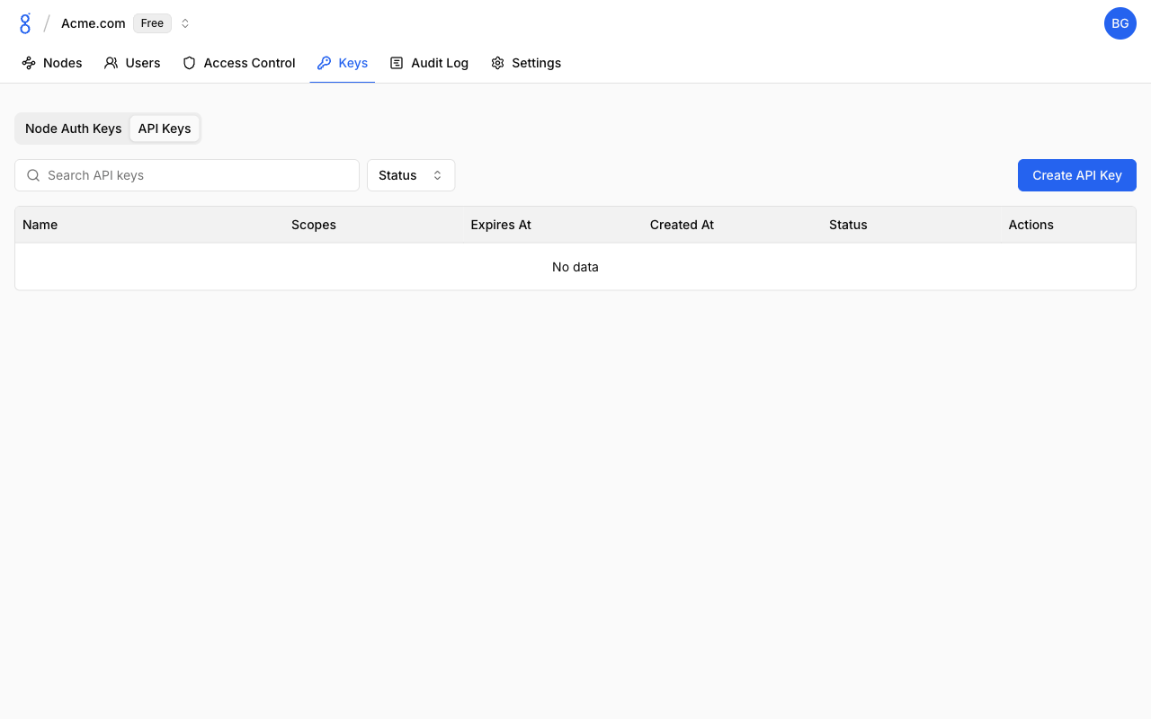 - Node Auth Keys — Device enrollment keys